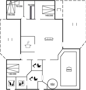 Dette sommerhus med swimmingpool ligger på en lukket, rolig vej og har udsigt til det fredede klitområde. Der er havkig fra ferieboligen. I poolafdelingen er der rutsjebane, 4 personers spa samt sauna. I 2025 er belysningen i poolområdet udskiftet med WiZ-belysning, der kan vise 16 mio. farver mv. I huset kan der være op til 9 personer samt 1 barn op til 3 år. Det er tilladt at medbringe 2 husdyr. Ferieboligen er på 135 m² og er bygget i 1993. I 2020 blev feriehuset solgt, og en løbende modernisering er igangsat. Ferieboligen er udstyret med 2 nye energibesparende varmepumper (2021). Ferieboligen har vaskemaskine og nyere tørretumbler. Der er desuden en skøn brændeovn. Badeværelserne er nyrenoverede til 2026-sæsonen. Huset er indrettet med 4 soveværelser og sovepladserne fordeler sig på 6 sovepladser i dobbeltsenge og 3 sovepladser i køjer. Derudover findes der 1 stk. barneseng samt 1 stk. barnestol. Fra den skønne hems er der et godt kig over huset og poolområdet. På hemsen befinder der sig 3 madrasser. Køkkenet er udstyret med 1 køleskab med tilhørende frysekapacitet på 70 liter. Der er 4 keramiske kogeplader, varmluftovn (2024), mikrobølgeovn samt opvaskemaskine (2024). Der er gulvvarme i køkken-/ alrum samt på badeværelserne. Badeværelserne er udstyret med bruseniche, toilet og skabsplads. I ferieboligen er der Sonos 3 trådløse højtalere med wi-fi tilslutning, som kan benyttes med Sonos app. Nyere Samsung smart-TV med dansk tv-kanal samt adskillige tyske kanaler via parabol. Ferieboligen er beliggende på en 1.338 m² stor naturgrund. Der er 950 m til havet. Nærmeste dagligvarebutik er beliggende i en afstand af 1.500 m. Til ferieboligen hører der i alt 50 m² åbne og nye terrassearealer i hårdttræ (2022) fordelt på den østlige og vestlige side af huset. Der er redskabsrum. Gynge. Weber kuglegrill til rådighed. Der er opsat lader til elbil (22 KwH). Et dejligt swimmingpoolhus beliggende i et naturskønt område med et rigt dyreliv og let adgang til strand via stisystem.