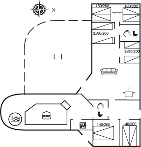 I et naturskønt område på Holmsland Klit, kun 900 m fra Vesterhavet, og få min. kørsel fra badebyen Søndervig, ligger dette dejlige og rummelige sommerhus. Huset er bygget i sten med stråtag i 1994 og ligger på en skøn natur-/klitgrund. Åbent terrasseareal med diverse havemøbler, hvor I kan slappe af og se børnene lege i sandkassen eller på gyngen. Klinkegulve, dog trægulve i soveværelserne. Stor, skøn pool-afdeling, hvor der er rig mulighed for at motionere og slappe af et godt sted til hygge og samvær. Her er der swimmingpool, børnebassin, svømmetræner, rutsjebane, 5-pers. standvands-spabad, sauna og adgang til et af husets badeværelser med bruseniche og gulvvarme. Der er endnu et badeværelse med bruseniche og gulvvarme. Stort køkken med bl.a. amerikansk køleskab (køl 518 l/frys 175 l), mikrobølgeovn, varmluftovn og opvaskemaskine. Hyggeligt indrettet opholdsstue med brændeovn, TV, DVD-afspiller og stereoanlæg med CD-afspiller. 6 soveværelser: 4 med dobbeltseng og 2 med hver 2 enkeltsenge. Af yderligere udstyr kan vaskemaskine og tørretumbler nævnes. Til de mindste feriegæster er der barneseng og høj barnestol. Et lyst og imødekommende sommerhus, som er velegnet til flere familier. I kan cykle eller køre til badebyen Søndervig, som har et godt udbud af butikker og aktiviteter. Der er supermarked, spændende butikker, restauranter og Lalandia. I kan også fiske og spille golf i området.
