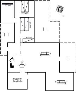 Et dejligt sommerhus beliggende på en klit, med god udsigt over området. Køleskab og separat fryser er placeret i bryggerset.