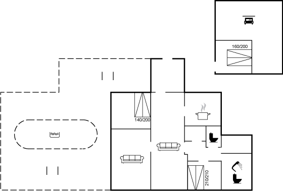 Nyd ferien inde eller ude med masser af muligheder for leg, afslapning eller madlavning udendørs – på terrasserne eller i haven. Sommerhuset har også gode områder til afslapning og hygge indendørs – en stue med brændeovn, spisestue og et rum med billardbord. Der er privat udendørspool til leg og afkøling på de varme dage. Poolen kan benyttes i perioden fra 1. maj til 1. oktober.