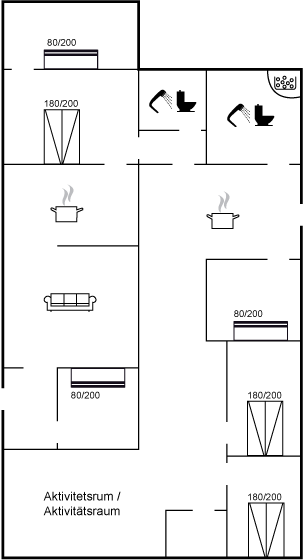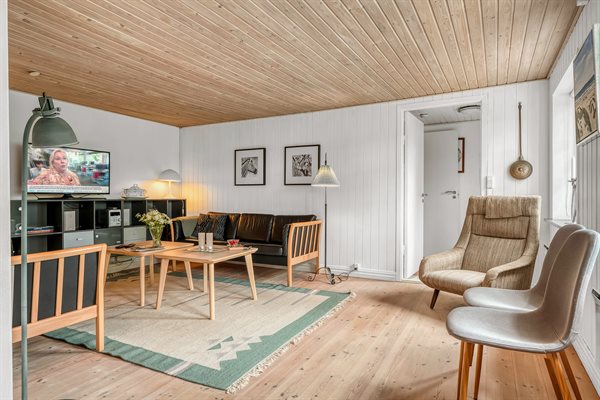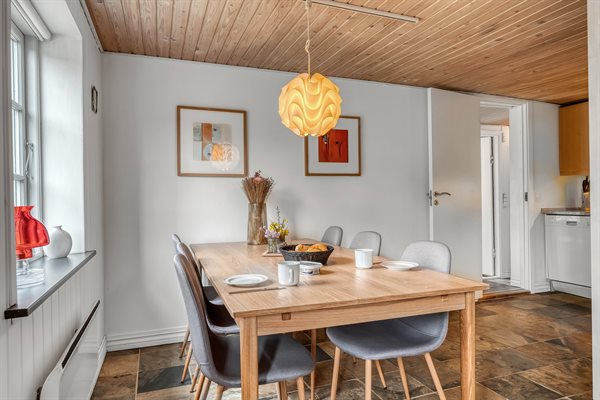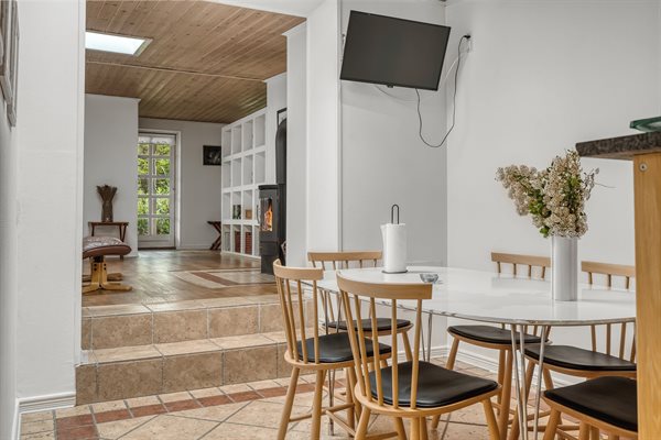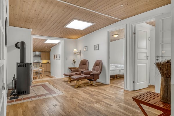 Huset er oprindeligt opdelt i to mindre huse, men er nu blevet lagt sammen og kan derfor rumme op til 12 personer – ideelt til en stor familie eller flere vennepar, der ønsker at tilbringe tid sammen. Med en god og funktionel indretning er der både plads til at slappe af og til at nyde de hyggelige samværsmomenter.