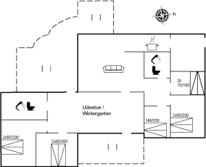 Flot og hyggeligt indrettet sommerhus beliggende på en meget stor grund med gode muligheder for leg og udendørs aktiviteter.